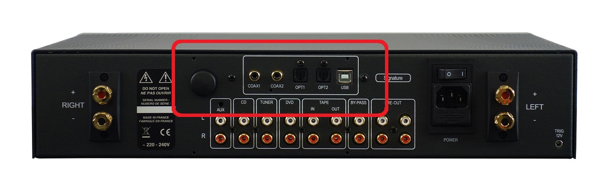 1 Asynchronous USB-B input. (XMOS USB interface with a specific program designed for ATOLL). – DSD64, DSD128 and DSD256. – PCM: 16-32 bits (44.1 kHz, 48 kHz, 88.2 kHz, 96 kHz, 176.4 kHz, 192 kHz, 352.8 kHz, 384 kHz).