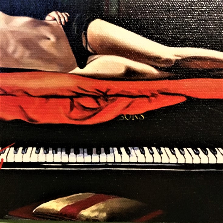 PISATI DA MILANO - LADY PIANOFORTE Retouchè Originale su tela. Dimensioni: 24x18 cm OFFERTA -50%!!!- Pisati da Milano ha la sua galleria sullo splendido Naviglio centrale.